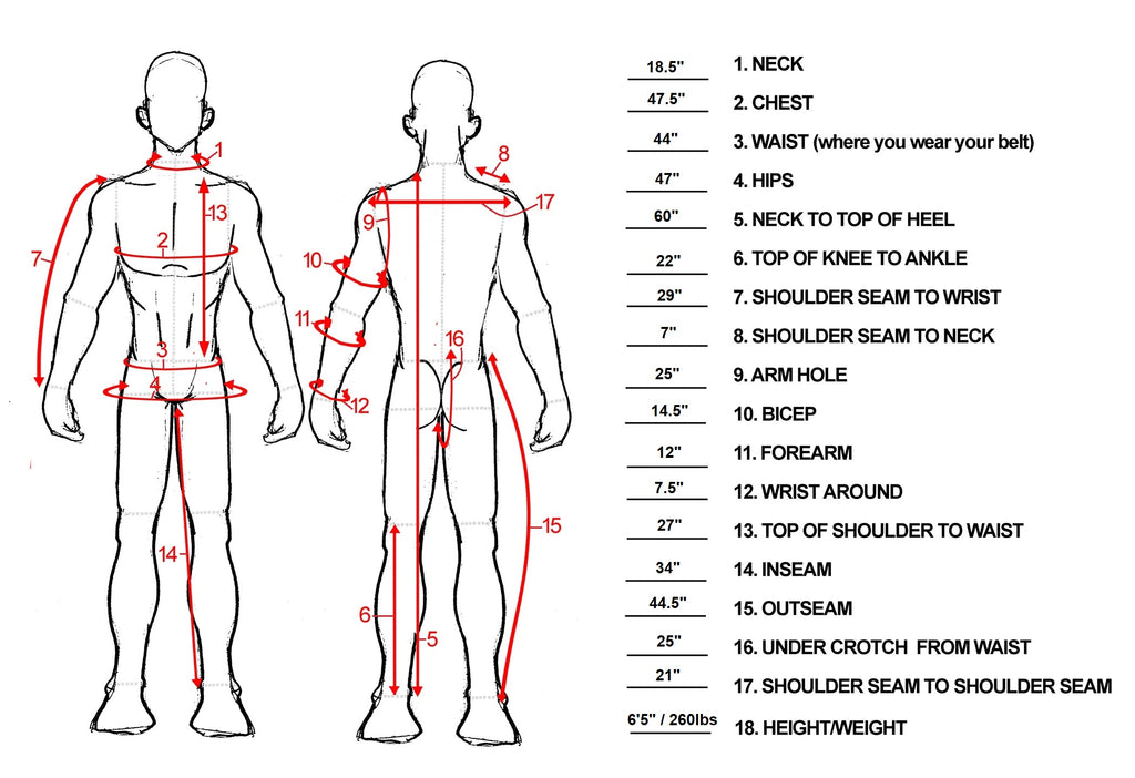 • Detailed body measurements picture attached