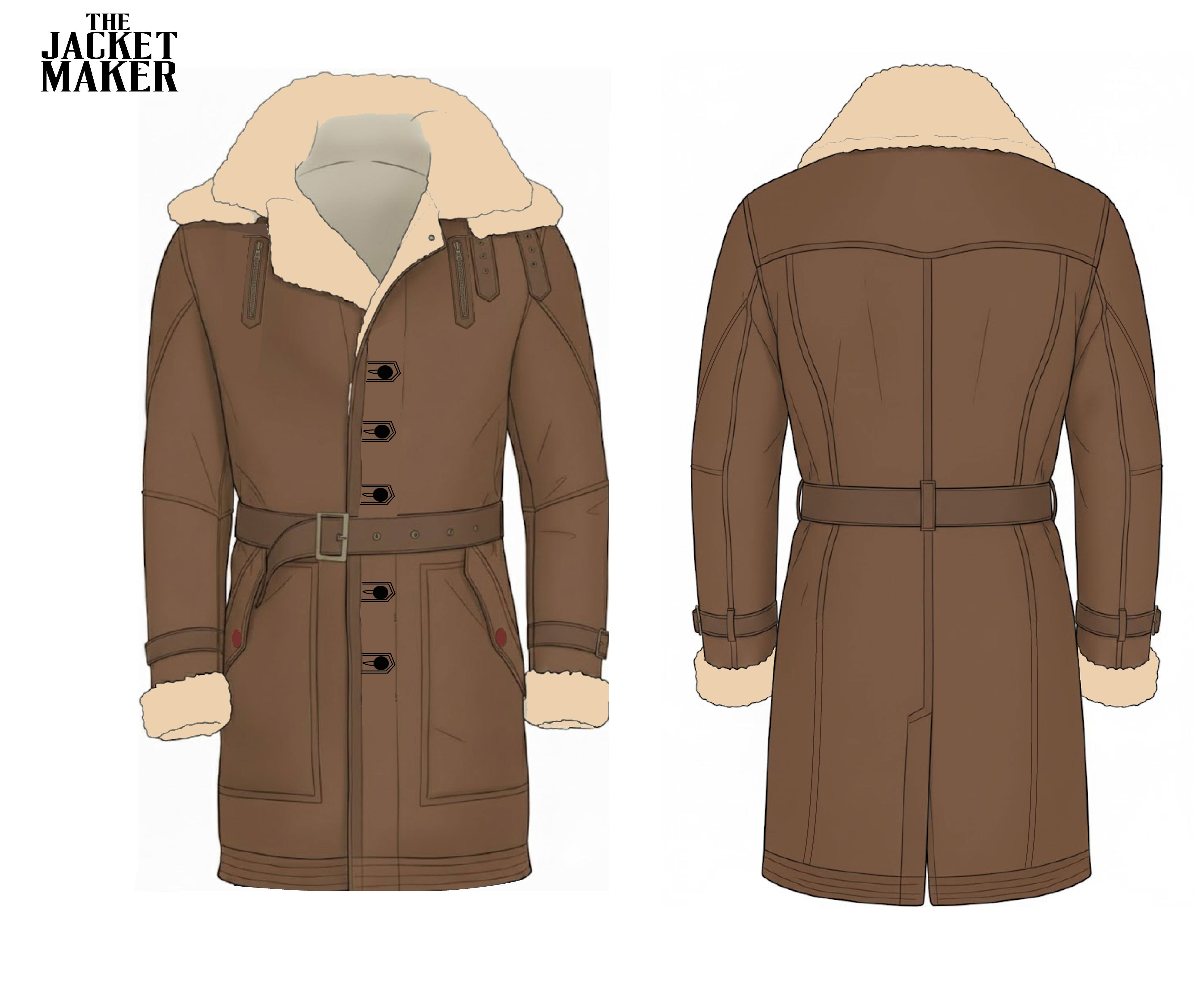 • Collar Style: Wide buckled double collar & lapels with fur sherpa lining in cream color (as per illustration)
