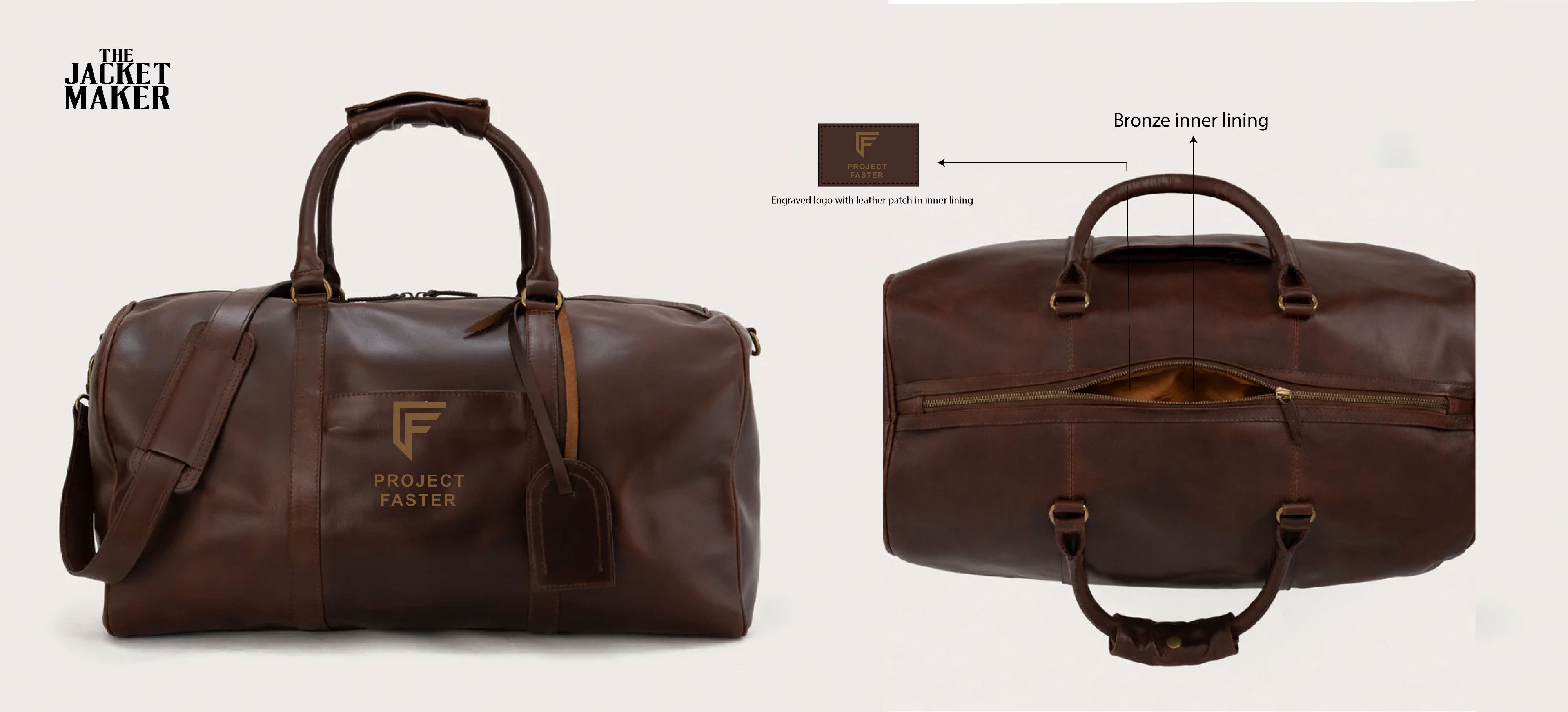 The Darrio Vintage Brown Leather Duffle Bag with the customizations you’ve outlined: